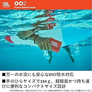 - 水の中でもOKなIPX7の防水性能があるJBLのワイヤレススピーカー。